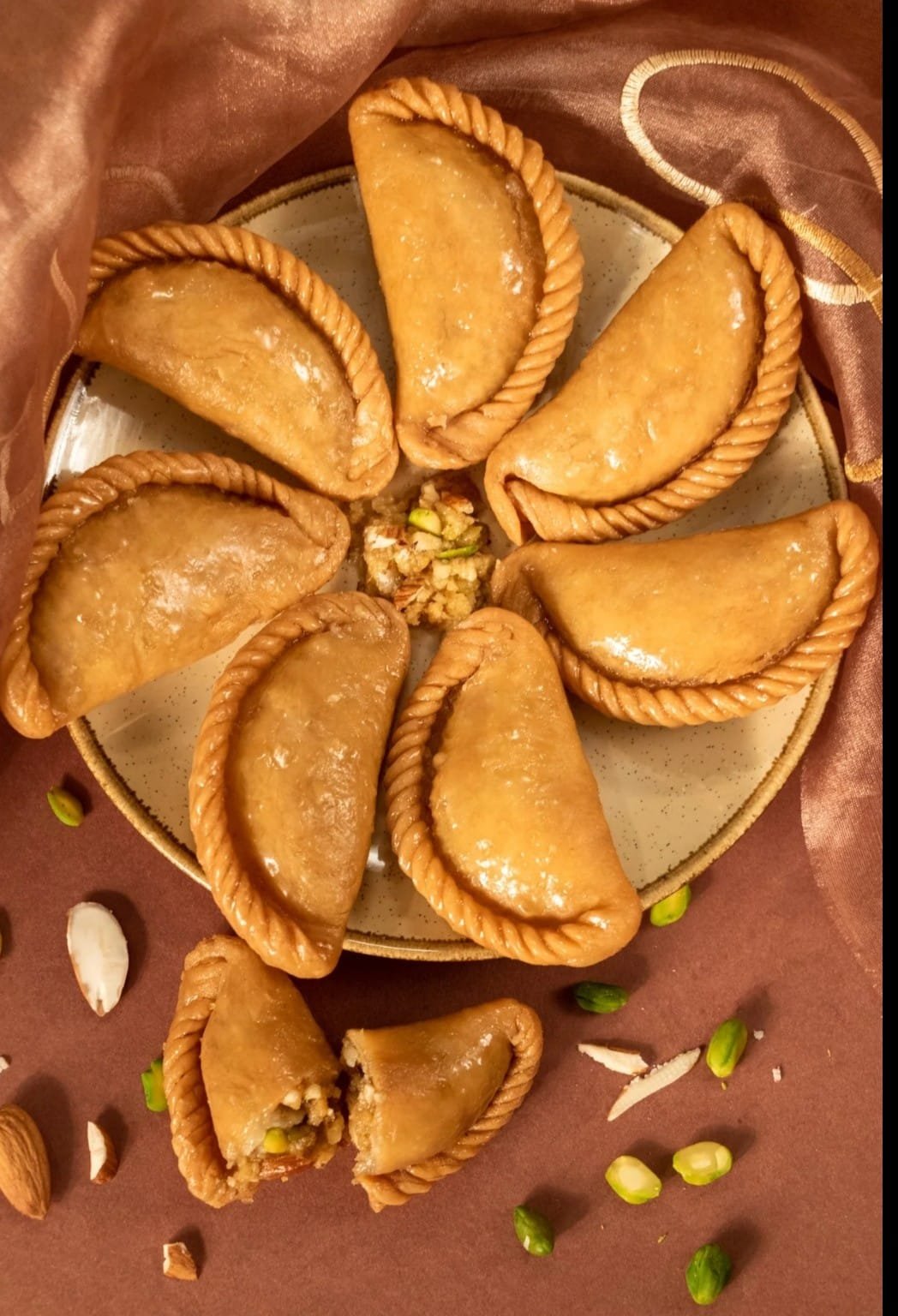 Gujiya is life changing festive sweet prepared especially during Holi and Diwali. It has a makhmali crisp outer shell made from refined wheat flour and a rich stuffing of khoya,coconut, and all of dry fruits.